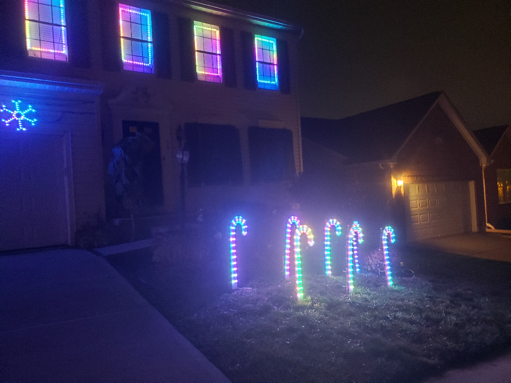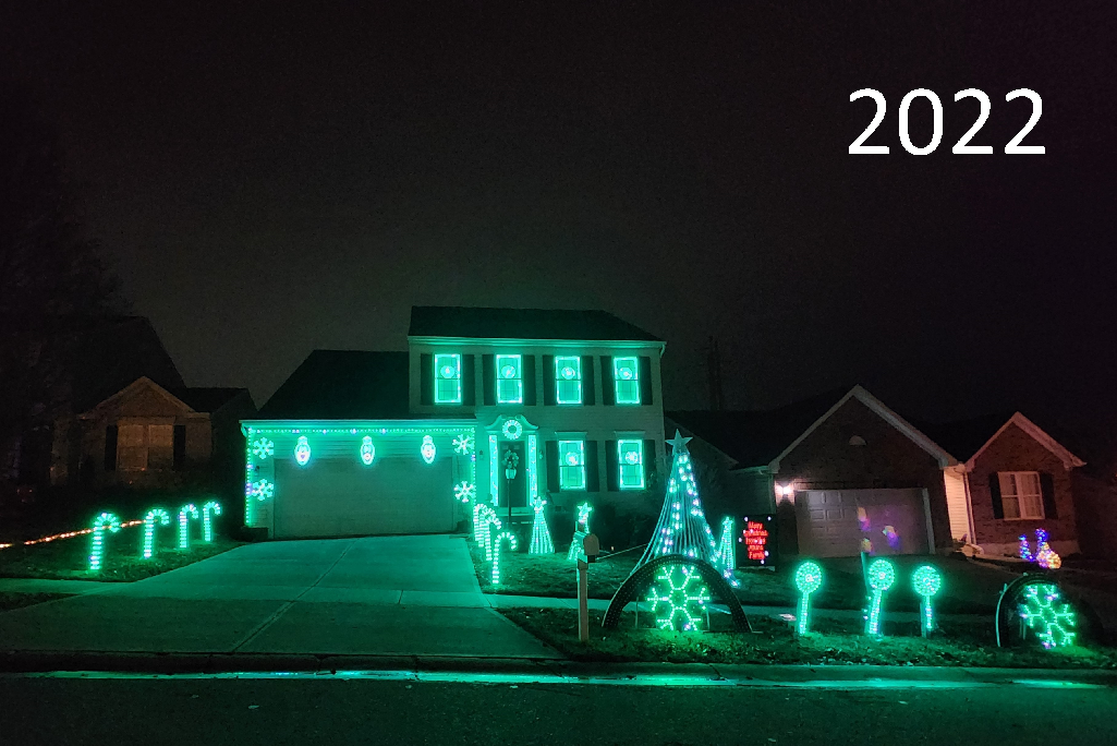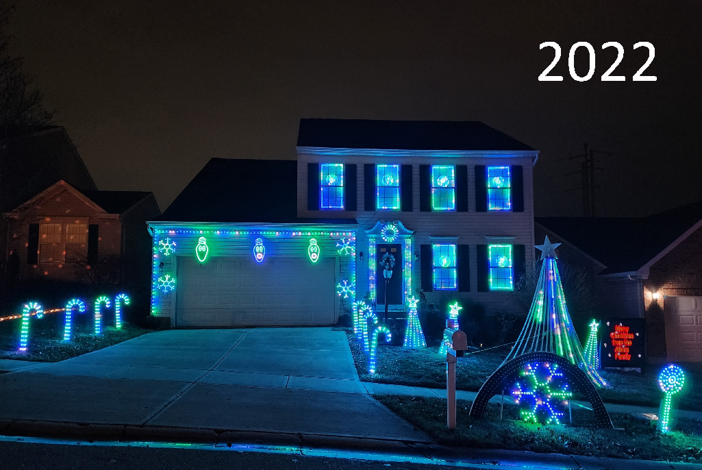 High energy computerized light show synchronized to music. Opening music is a 9 minute custom music to get you dancing and in the holiday spirit. Each show closes with a different ending number.