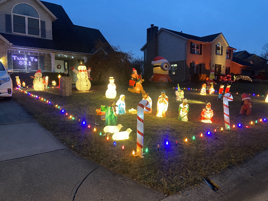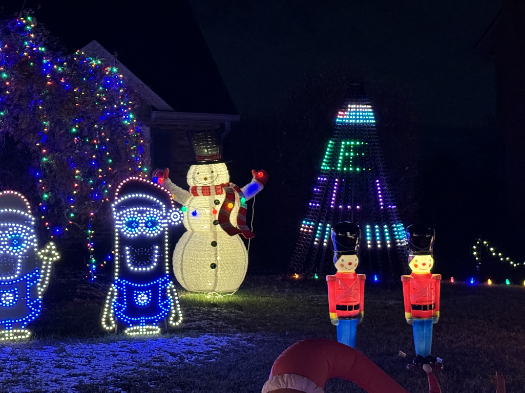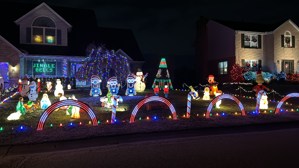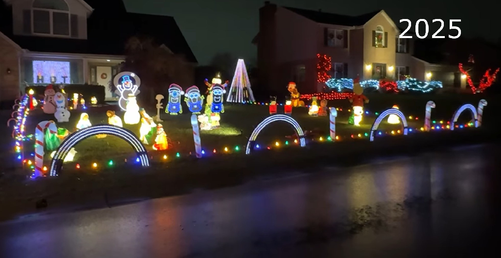 Computer Controlled Christmas Lights display synchronized to music. Includes blow molds, multiple characters made out of coro, a mega tree, and a large window display. Confirmed for 2025. Don’t forget to check us out for Halloween as well!