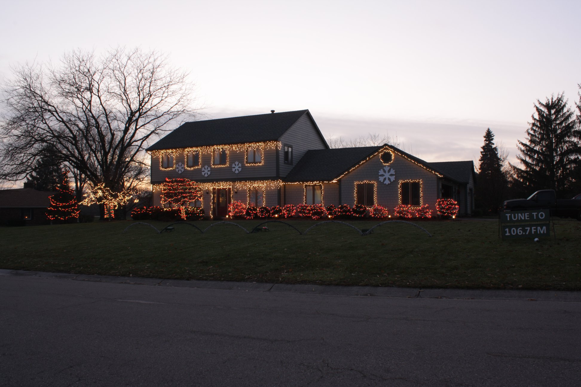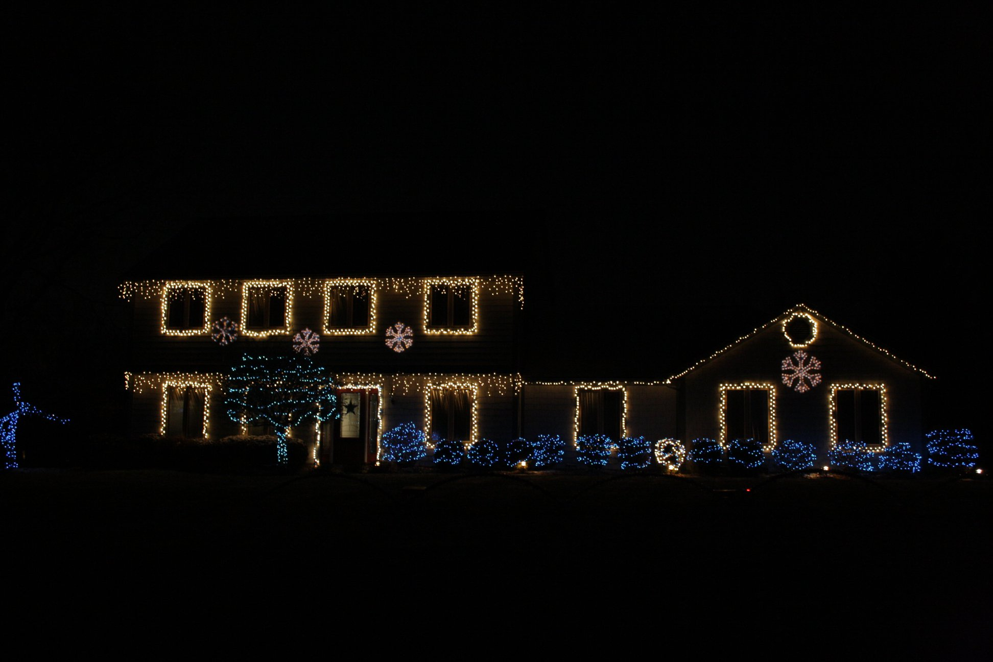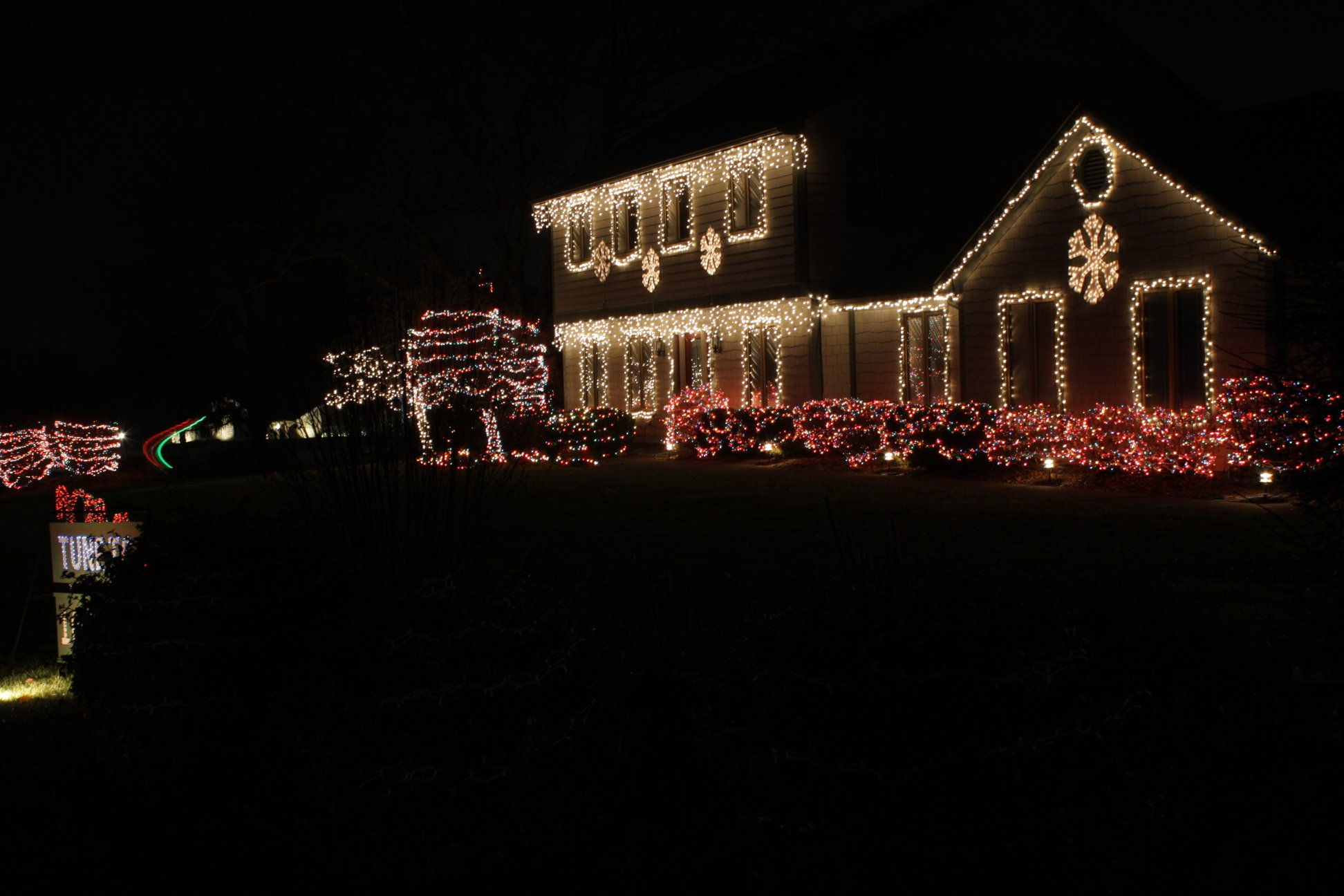 The show has over 80,000 lights on over 775 different channels. In addition to the house and bushes in front, the display includes mega trees, an entire forest of spiral trees, and more!