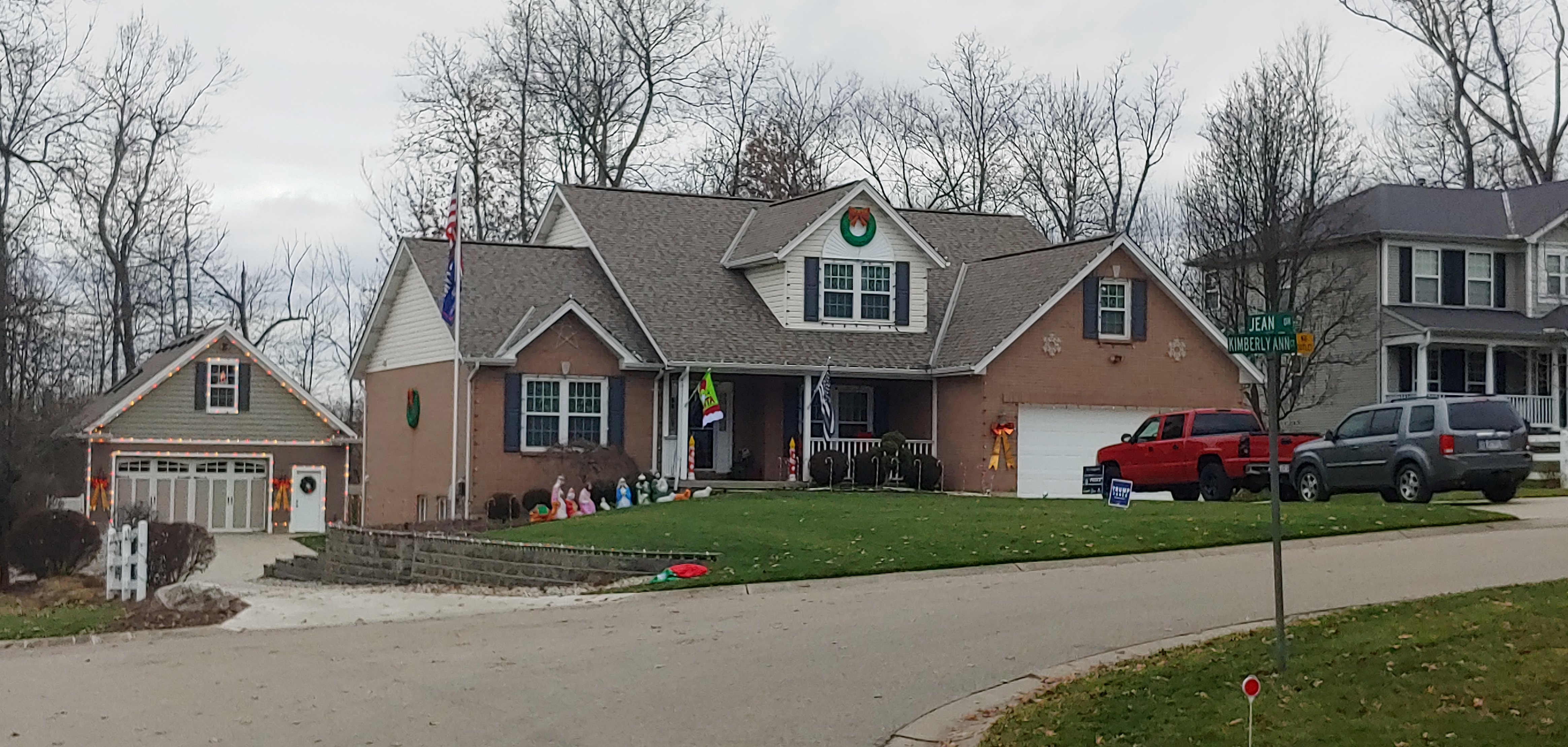 A small static display that decorates their house in garage the end of a cul-de-sac.