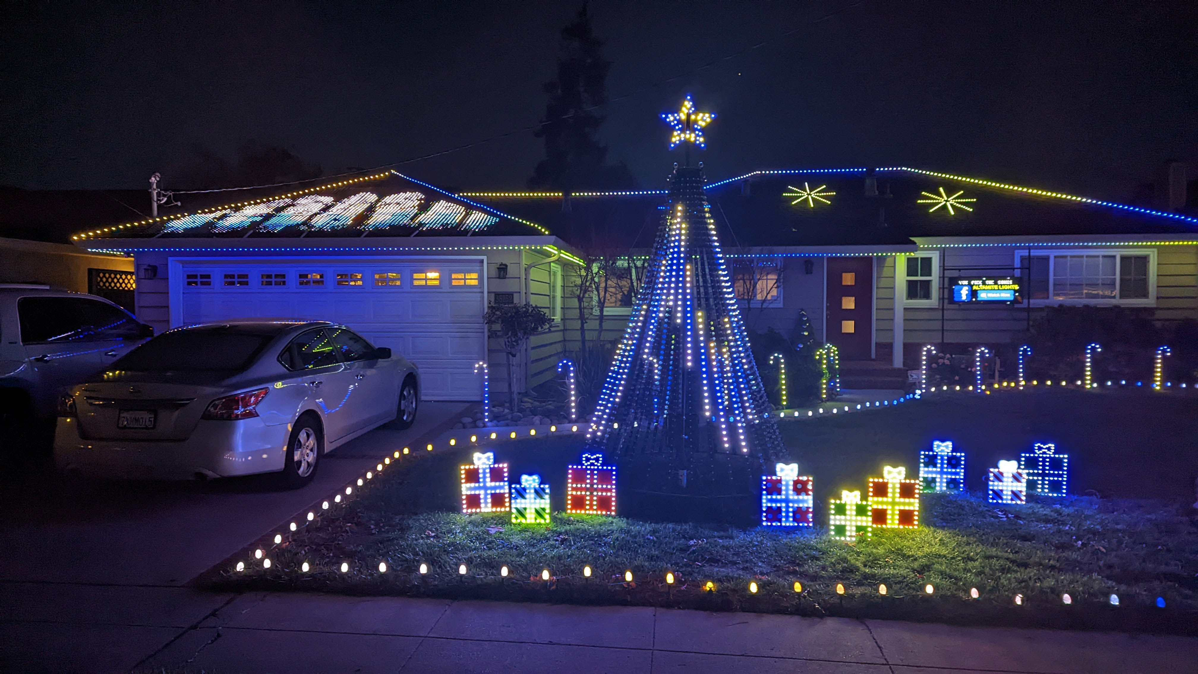 Started during the pandemic, we have been running ALTAmite lights for 3 years now. We have over 7000 animated pixels and a 24 thousand-pixel display panel. We have a library of over 30 songs sequenced for our light show. Enjoy the show from the comfort of your car on 103.5FM or freezing on the sidewalk. We also have an interactive website (https://altamitelights.remotefalcon.com/remoteFalcon) where viewers can select the next song to play.